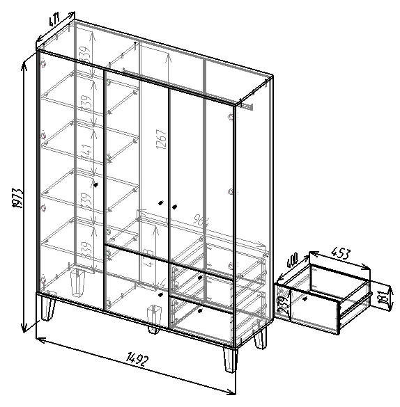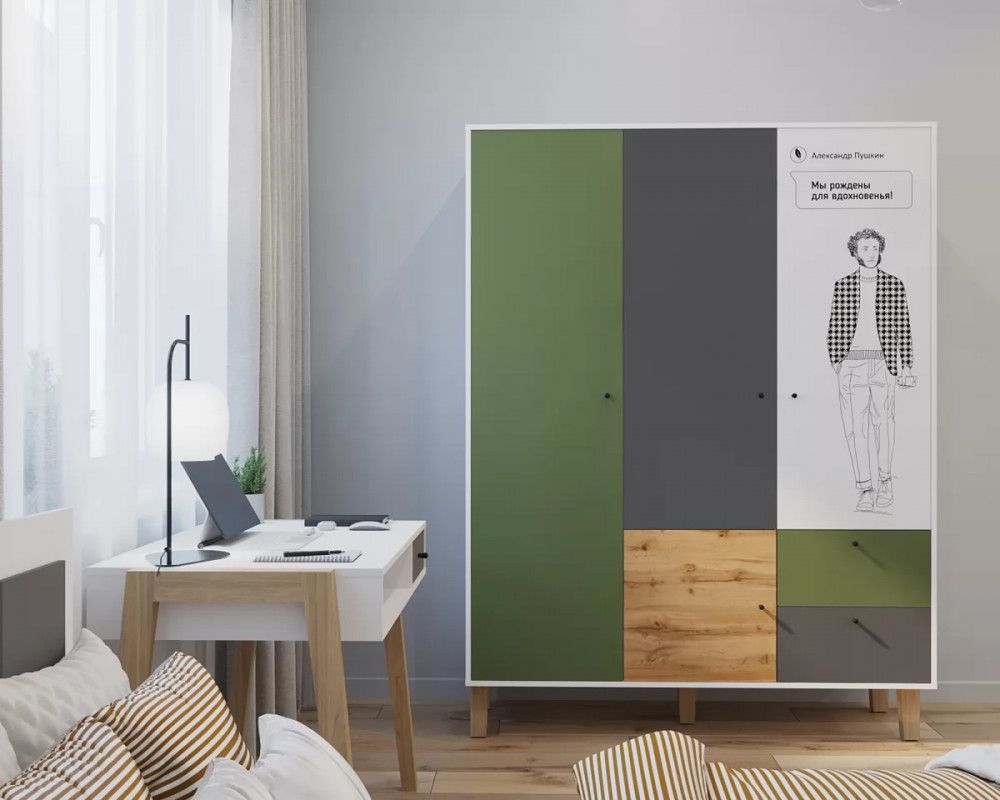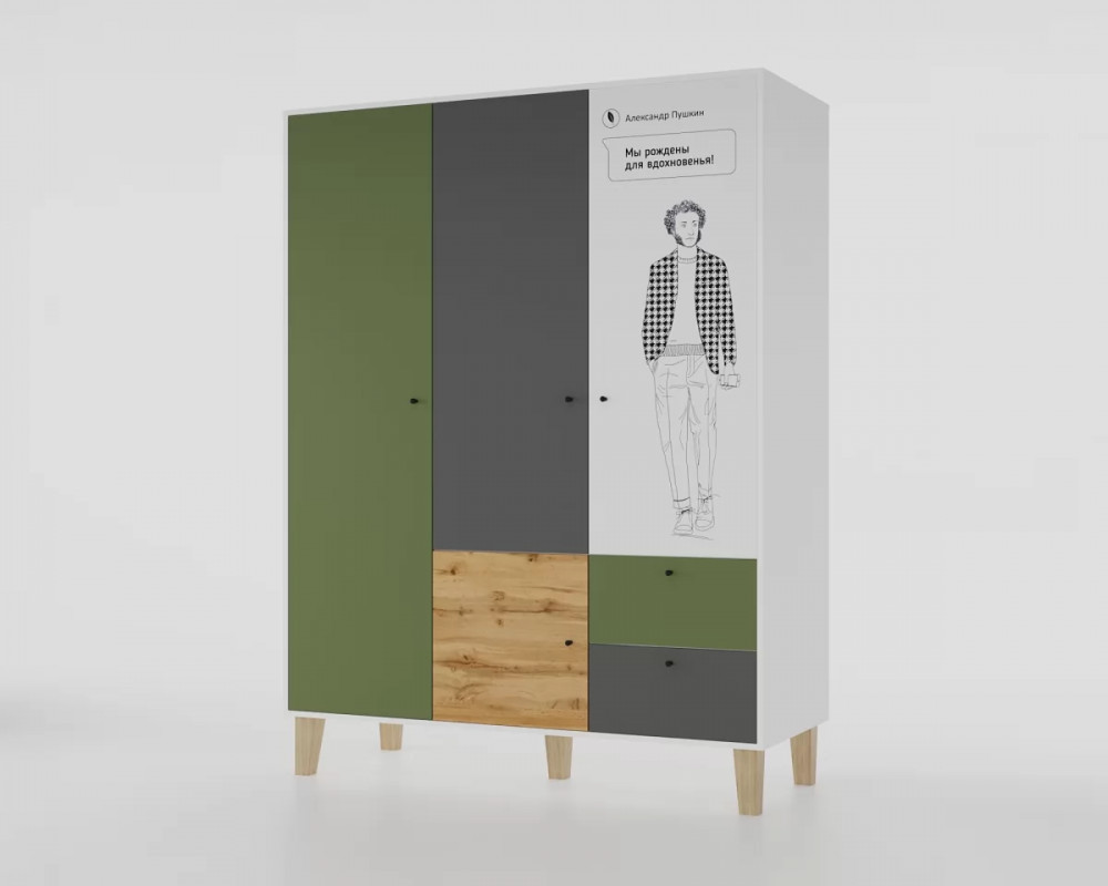 Ширина (мм): 1492 Высота (мм): 1973 Глубина(мм): 471 Цвет корпуса: Белый Цвет фасада / вставок: Дуб Вотан, Олива, Белый с рис."Пушкин", Темно-серый Цвет видимой фурнитуры: Черный Материал корпуса: ЛДСП Материал фасада / вставок: ЛДСП Вес (кг): 78,4