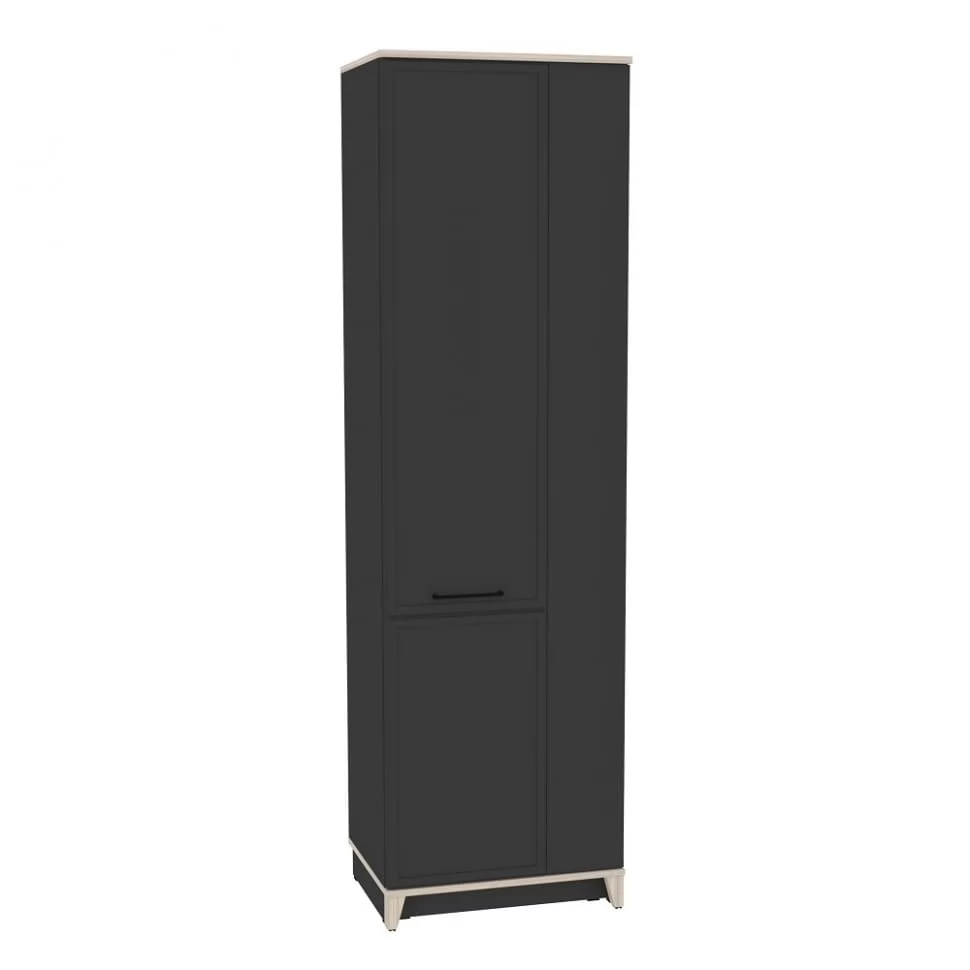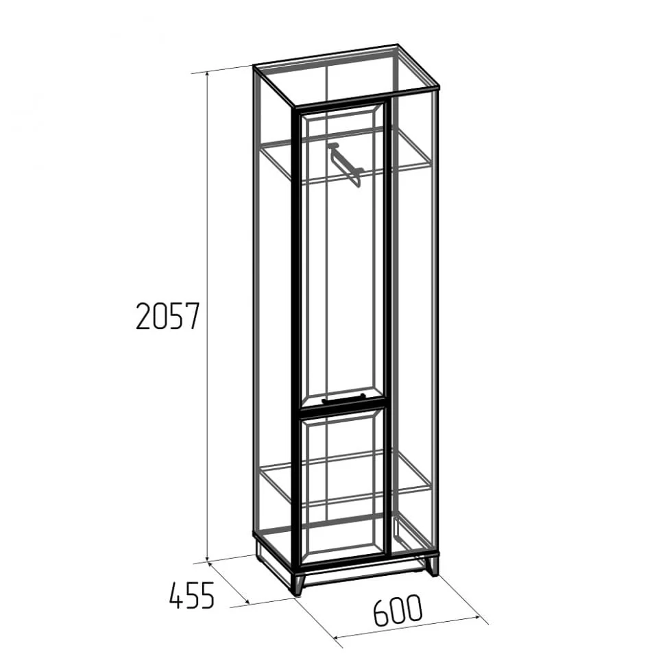 Ширина (мм): 600 Высота (мм): 2057 Глубина(мм): 455 Цвет корпуса: Белый-Блеквуд Сатиновый, Антрацит-Блеквуд Сатиновый Ручка-скоба металлическая (черный матовый) Петли: накладные Полки: регулируемые по высоте нагрузка на полку (кг): до 10 Материал корпуса: ЛДСП Материал фасада / вставок: ЛДСП