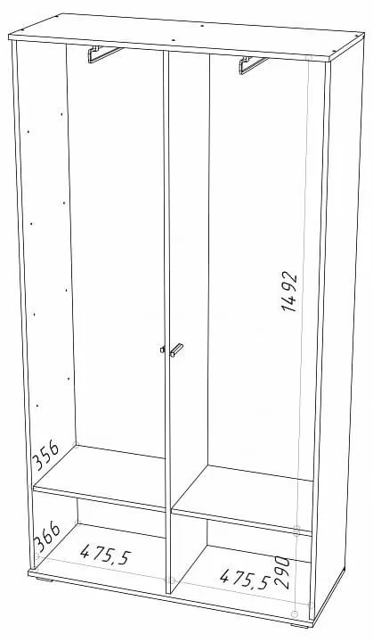 Компоненты, входящие в комплект: 2 дверцы, 2 полки, 2 штанги для вешалок
