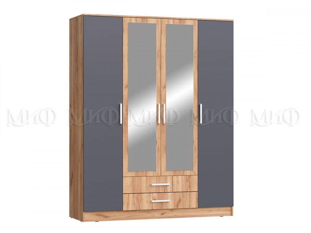 Шкаф для одежды 4-дверный Мартина ЛДСП Графит, Дуб крафт в Советском