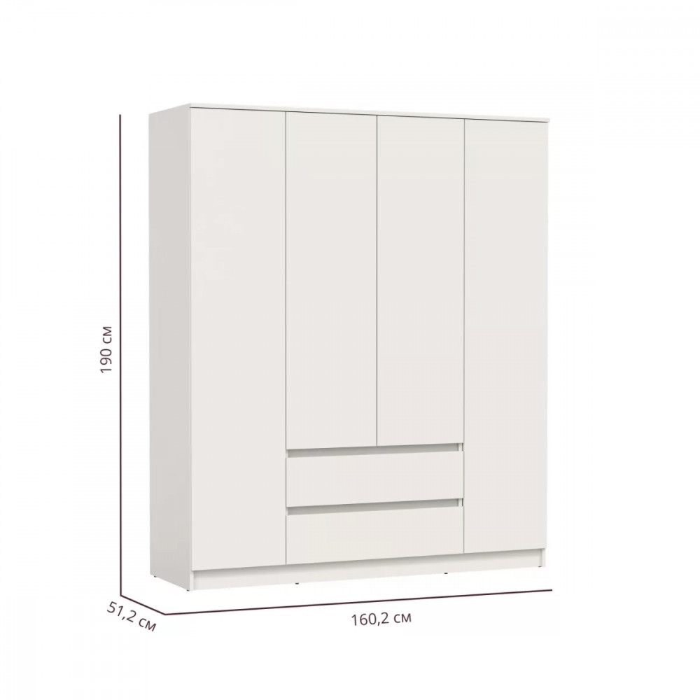 Конструкция позволяет организовать идеальное пространство для хранения вещей: одежда размещается на удобной штанге, мелочи аккуратно располагаются на полках, а аксессуары удобно хранятся в глубоких выдвижных ящиках.