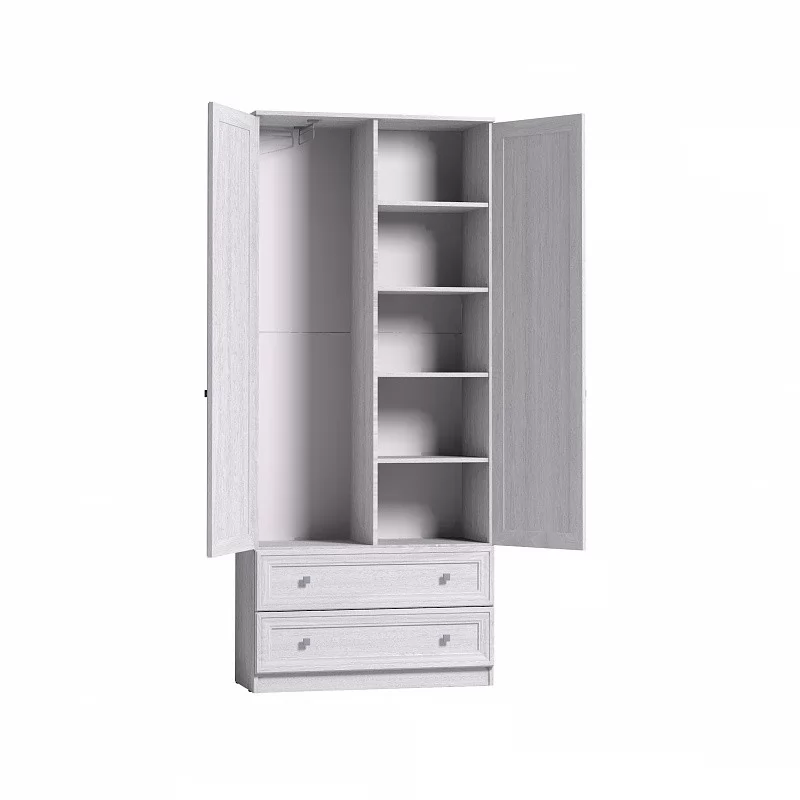 PAOLA 116 Шкаф для одежды и белья - отличный и вместительный двустворчатый шкаф, который украсит своим видом гостиную или спальню. Глухой фасад дверей шкафа декорирован маленькими металлическими ручками и обрамлен сложным профилем МДФ, что обеспечивает ему привлекательный внешний вид. Компактно разместить все необходимые вещи позволит функциональное решение шкафа. За распашными дверцами предусмотрена выдвижная штанга и 4 регулируемые по высоте полки, способные выдержать нагрузку до 7 кг. Разместите на них постельное белье и одежду. А в 2 больших выдвижных ящиках удобно хранить вещи, которые не требуют глажки: полотенца, спортивную или шерстяную одежду, зимние одеяла или объёмные пледы. Ящики оснащены шариковыми направляющими полного выдвижения и способны выдержать нагрузку до 20 кг. Шкаф обязательно крепится к стене на подвесы.