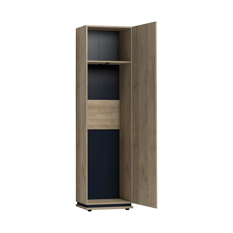 Распашной шкаф для одежды и белья комплектуется выдвижной штангой для одежды. Фасад шкафа перенавешивается на ваше усмотрение.