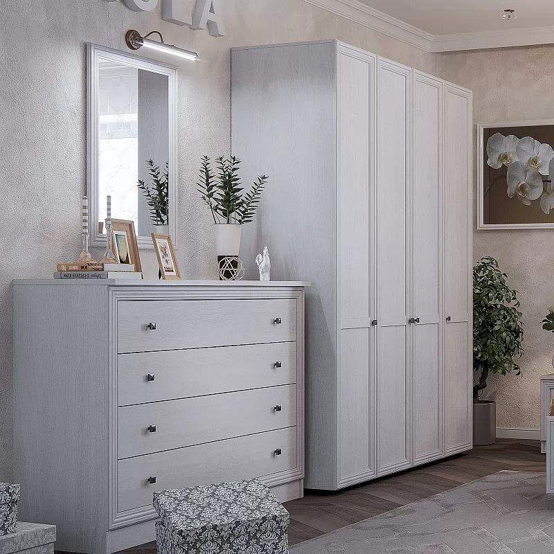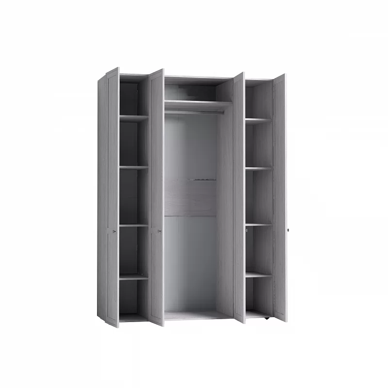 Большой и вместительный шкаф для одежды и белья отлично подойдет для многочисленной семьи. Внутри шкафа стационарная штанга (777 мм), которая выдержит нагрузку в 40 кг, а также полки, регулируемые по высоте. Рамочные фасады, обрамленные сложным профилем МДФ, создают атмосферу роскоши и изящества. Для надежности шкаф обязательно крепится к стене на подвесы. Регулируемые опоры позволят компенсировать незначительные неровности пола.