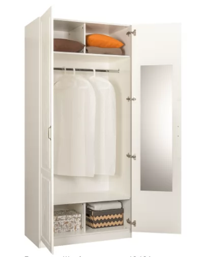 Двухстворчатый шкаф для одежды "Ливерпуль" поможет в размещении вашего гардероба. За распашными дверцами находятся штанга для вешалок-плечиков и две широкие полки, разделенные перегородками.