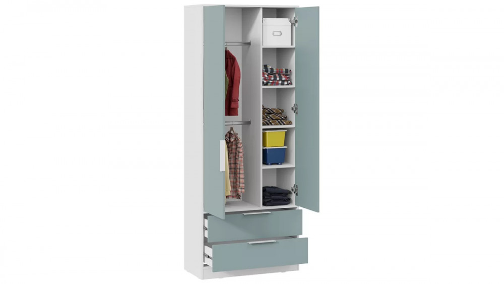 Назначение: Мебель для хранения Количество дверей: 2 Гарантийный срок: 24 месяца Комната использования: Молодежная, Офис Материал кромки каркаса: ПВХ Стиль: Современный Тип шкафа: Шкаф с распашными дверями, Шкаф с выдвижными ящиками Материал кромки фасада: ПВХ Тип: Шкаф комбинированный Расположение: Напольный Тип направляющих ящиков: Шариковые Наполнение: Полки ЛДСП, штанги, ящики Материал каркаса: ЛДСП Материал ручек: Металл Производство: Россия Габаритная ширина: 840 Габаритная высота: 2 132 Форма предмета: Прямоугольный Габаритная глубина: 407 Количество ящиков: 2 Модель: Марли (корпус) Срок службы: 5 лет Материал фасада: ЛДСП Оттенок: Белый, Голубой Цвет: Белый, Серо-голубой Цвет каркаса: Белый (поры дерева) Цвет фасада: Белый (поры дерева), Серо-голубой Оттенок каркаса: Белый Оттенок фасада: Белый, Голубой Тип сборки: Не универсальный Наличие механизма раскладки: Нет Наличие спального места: Нет