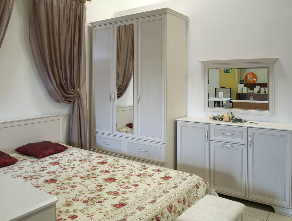 Спальня «Венеция» выполнена в классическом стиле и отлично впишется в любой интерьер. Регулируемые опоры. Петли с доводчиками на всех фасадах. Шариковые направляющие полного выдвижения. Кровати комплектуются ортопедическим основанием на ножках или с подъемным механизмом. Ручки металлические цвет – «Хром глянцевый» с белой вставкой.