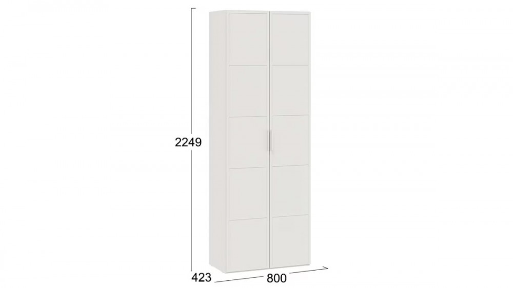 Назначение: Мебель для хранения Комната использования: Спальня Материал кромки каркаса: ПВХ Тип: Шкаф Материал каркаса: ЛДСП Материал ручек: Пластик Производство: Россия Габаритная ширина: 800 Габаритная высота: 2 249 Форма предмета: Прямоугольный Габаритная глубина: 423 Модель: Стелла (детская) Материал фасада: МДФ в пленке ПВХ Цвет: Белый холст, Белый Жемчуг Цвет каркаса: Белый Жемчуг Цвет фасада: Белый холст Наличие механизма раскладки: Нет Наличие спального места: Нет