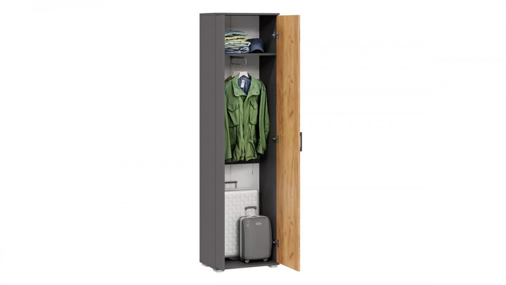 Назначение: Мебель для хранения Количество дверей: 2 Гарантийный срок: 24 месяца Комната использования: Прихожая Стиль: Современный Тип шкафа: Шкаф с распашными дверями Тип: Шкаф Расположение: Напольный Наполнение: Полка ЛДСП, штанга выдвижная Материал каркаса: ЛДСП Направление открытия двери: Определяется при сборке Производство: Россия Габаритная ширина: 540 Габаритная высота: 1 998 Габаритная глубина: 357 Количество полок ЛДСП: 1 Модель: Эрика Срок службы: 10 лет Цвет: Графит Серый, Дуб Крафт золотой Тип сборки: Универсальный левый/правый Наличие механизма раскладки: Нет Наличие спального места: Нет