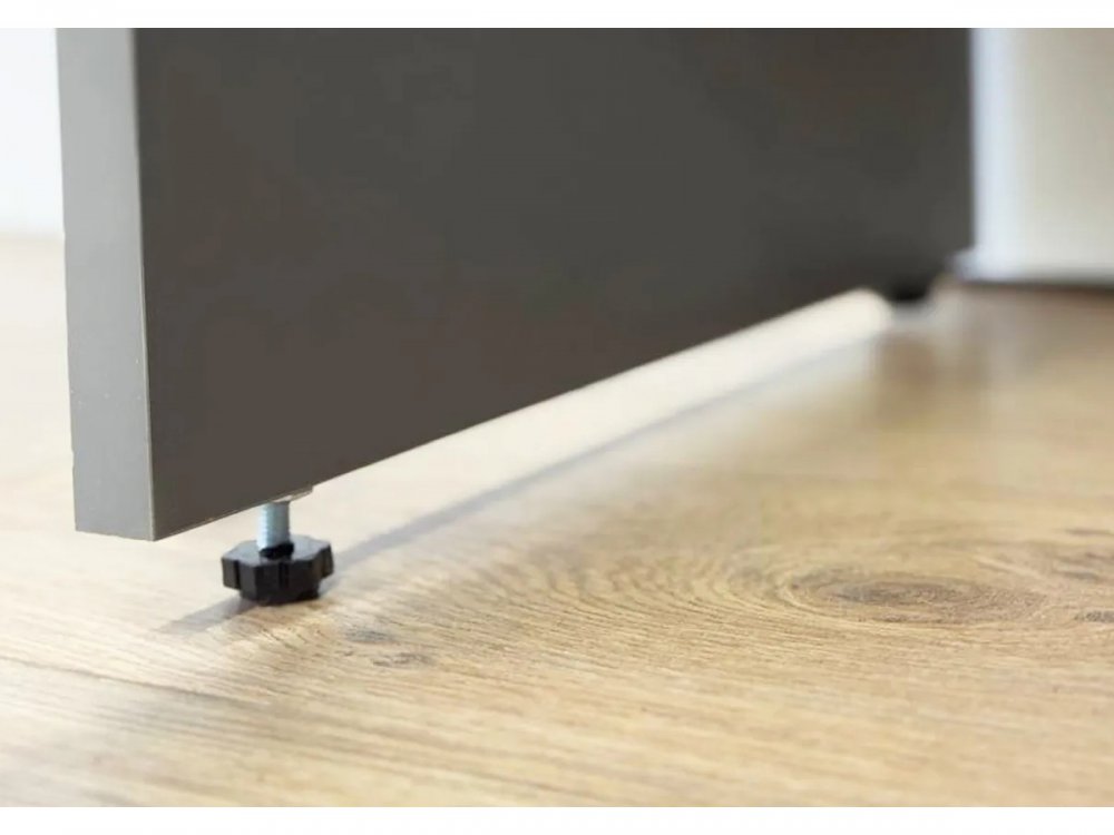Изготовленный из высококачественного ЛДСП толщиной 16 мм, шкаф гарантирует прочность и долговечность. Длинные пластиковые ручки добавляют современный акцент и удобство в использовании.