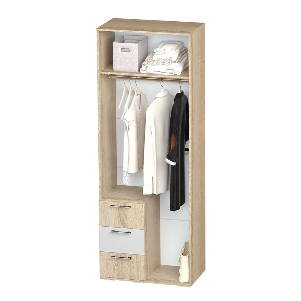 Коллекция "Белладжио" - это современные функциональные модули, которые позволяют создать интерьер спальни, гостиной, прихожей. В дизайне используются теплый древесный оттенок "Дуб Сонома" и "Белый шагрень", благодаря которым комната наполняется светом. Покрытие UF -лаком фасадов повышает надежность и долговечность использования мебели. Лаконичные прямые ручки подчеркивают строгость форм модулей.