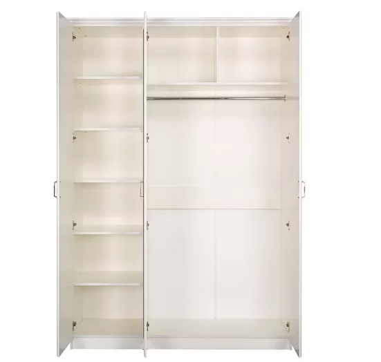 Комбинированный шкаф "Ливерпуль" - отличное решение для организации гардеробной зоны в спальне. Система хранения состоит из двух блоков с распашными дверцами. Большой блок представлен объемной нишей со штангой для вешалок, антресольной полкой и двумя отсеками для обуви или сумок. Второй блок оборудован множеством вместительных полок для размещения одежды, постельного белья или иных текстильных принадлежностей. Центральная дверца шкафа оформлена зеркальным полотном.