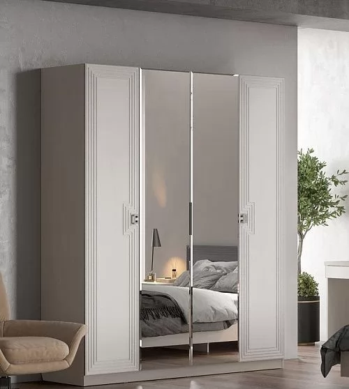 Шкафы изготовлены из материала ЛДСП 16 мм, задняя стенка из ХДФ. Фасады представлены в комбинированном варианте: створки из МДФ 16 мм под пленкой ПВХ: Холст белый, Холст вулканический, Холст сапфировый. Комплектуются петлями с доводчиком и матовыми хромированными металлическими ручками.