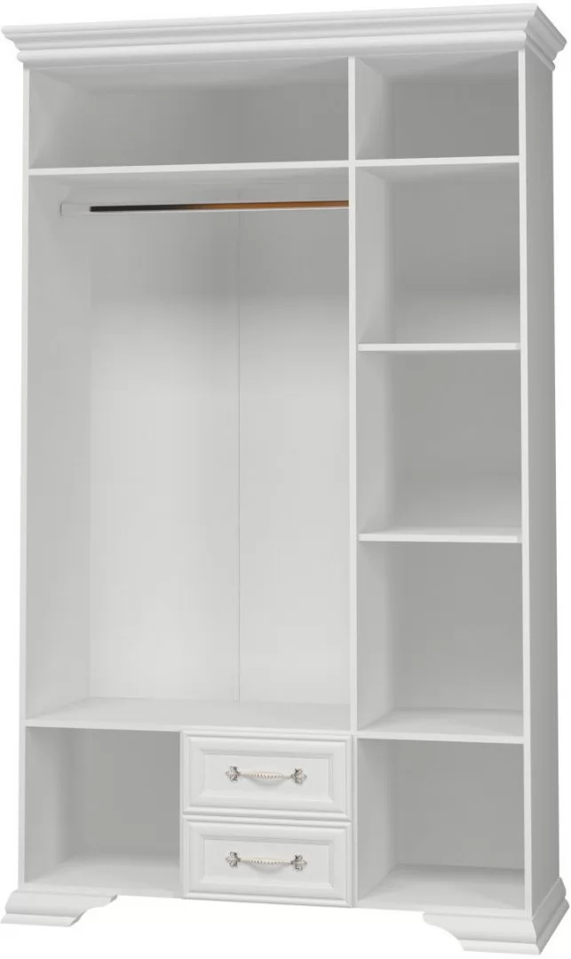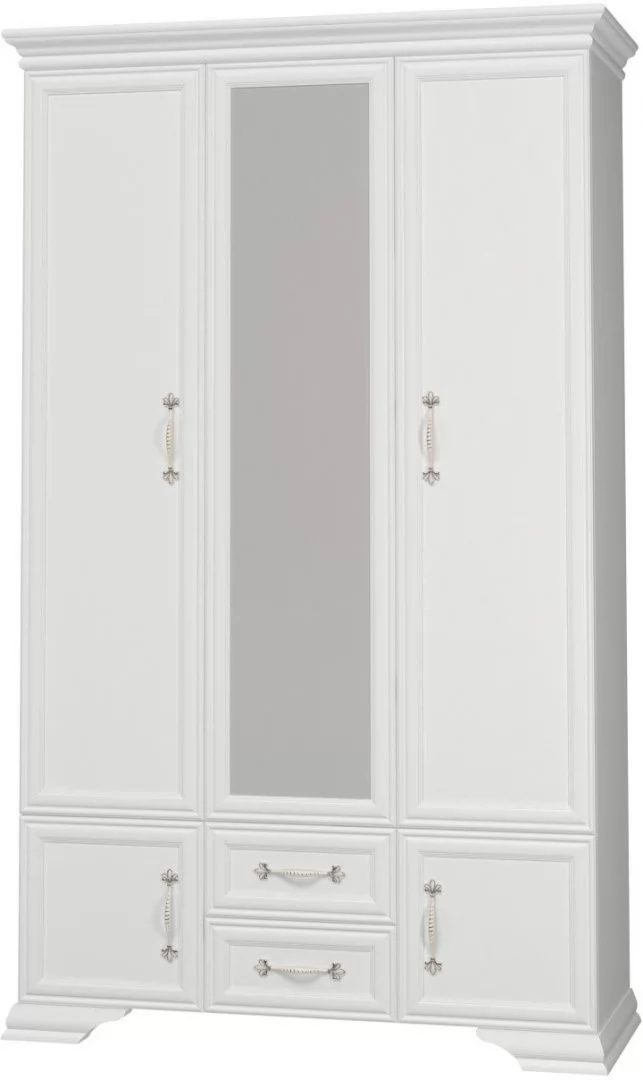 Глубина-550 мм Ширина-1335 мм Высота-2175 мм Срок службы-7 лет Гарантийный срок-18 месяцев Монтаж-Требует сборки Фрезеровка фасада-Да Количество жестких полок-4 шт Материал фасада-ЛДСП 8 мм, МДФ 22 мм, Зеркало Материал корпуса-ЛДСП 16 мм Материал полок-ЛДСП Вариант отделки фасада-Облицованный МДФ профиль Количество дверей-3 шт Фурнитура-Петли с доводчиком, шариковые направляющие полного выдвижения, Штанга для одежды Коллекция-Спальня «Грация» Цвет корпуса-Белый Цвет фасада-Белый глубокие поры, Белый лак Количество вкладных полок-2 шт Количество выдвижных ящиков-2 шт Фасады с древесной или текстурной поверхностью-Да Корпус с древесной или текстурной поверхностью-Нет