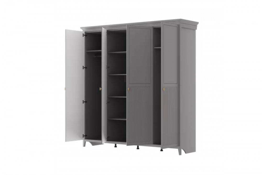 Глубина: 589 мм Ширина: 2160 мм Высота: 2200 мм Срок службы: 7 лет Гарантийный срок: 18 месяцев Монтаж: Требует сборки Модульность изделия:Да Фрезеровка фасада: Да Материал фасада: МДФ Материал корпуса: ЛДСП Материал полок: ЛДСП Материал опоры: Массив Вариант отделки фасада: Лакокрасочное покрытие Количество дверей: 4 шт Фурнитура: Штанга для одежды, шариковые направляющие полного выдвижения, петли с доводчиком Коллекция: Спальня «Никеа» (антрацит) Цвет корпуса: Серый шифер Цвет фасада: Антрацит лак