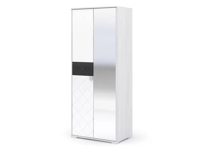 Двухстворчатый шкаф ШК 022 входит в модульный ряд спальни Сальма. Шкаф Сальма современный и оригинальный, благодаря необычным фасадам, выполненным в декоре Белый глянец с графическим узором линейки и вставкой из стекла черного цвета-лакобель. Шкаф ШК 022 оснащен встроенным зеркалом на всю длину фасада, четырьмя полочками и штангой для вешалок внутри.