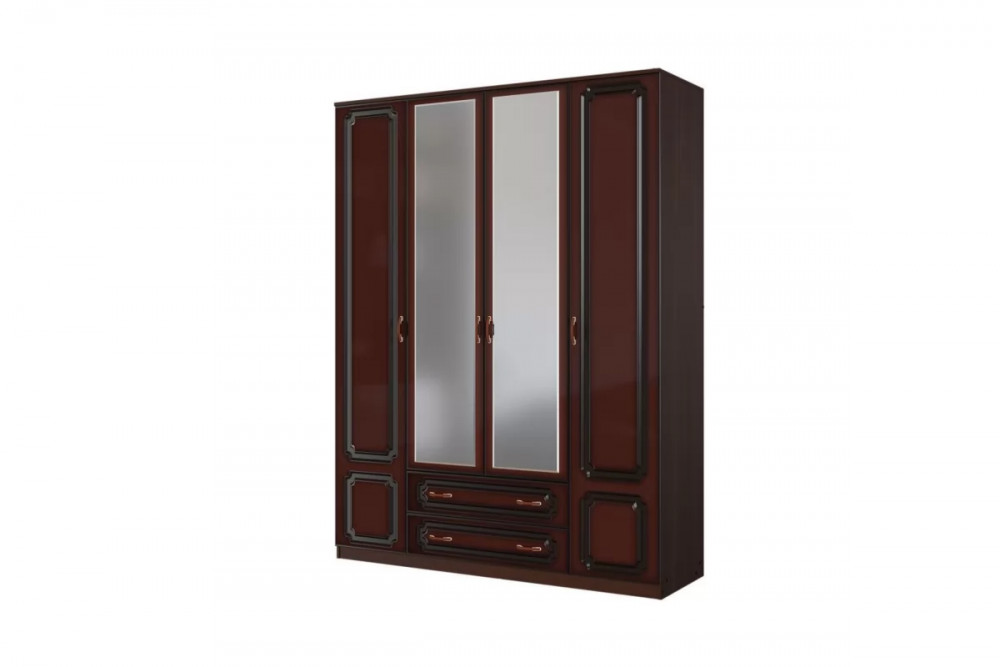 Глубина-500 мм Ширина-1640 мм Высота-2150 мм Срок службы-7 лет Гарантийный срок-18 месяцев Монтаж-Требует сборки Фрезеровка фасада-Да Количество жестких полок-3 шт Материал фасада-МДФ 16 мм, Зеркало 4 мм Материал корпуса-ЛДСП 16 мм Материал полок-ЛДСП Вариант отделки фасада-Отделка лаком, Тонировка Количество дверей-4 шт Фурнитура-Шариковые направляющие полного выдвижения, Штанга для одежды Коллекция-Спальня «Лакированный орех» Цвет корпуса-Орех шоколадный Цвет фасада-Орех лак Количество вкладных полок-6 шт Количество выдвижных ящиков-2 шт Корпус с древесной или текстурной поверхностью-Да