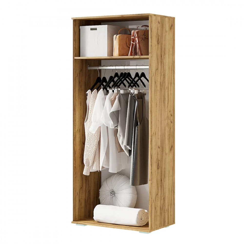 -внутренняя комплектация изделия состоит из хромированной штанги для одежды на вешалках и ниш для остальных вещей.