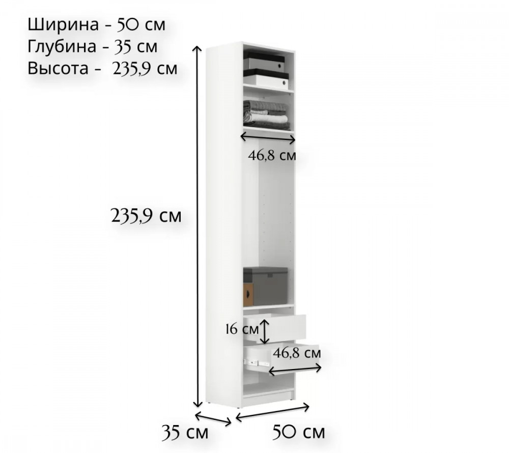Шкаф в спальню MOBI белый REG/50 в Советском