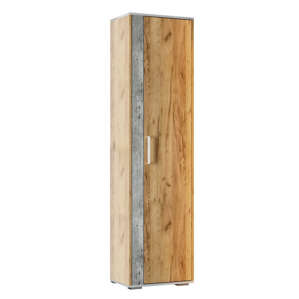 - модель выполнена из ЛДСП в цвете крафт с контрастной вставкой цвета бетон, - комплектация представляет собой отделение с выдвижной штангой для одежды на вешалках и полок для вещей и аксессуаров.
