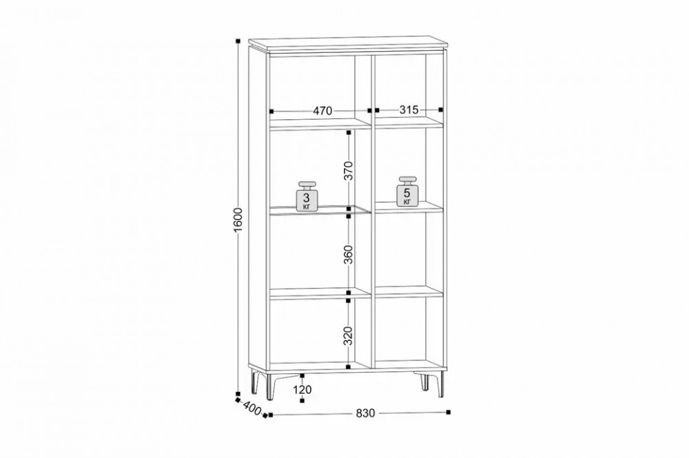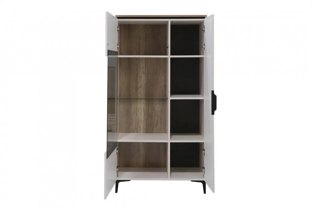 Шкаф-витрина с двумя секциями подчеркнет уникальность стиля и поможет удобно организовать пространство. Располагается на металлических опорах, что облегчает уборку под ним Размеры: Ширина: 830 мм | Глубина: 400 мм | Высота: 1600 мм Вес: 72.62 кг