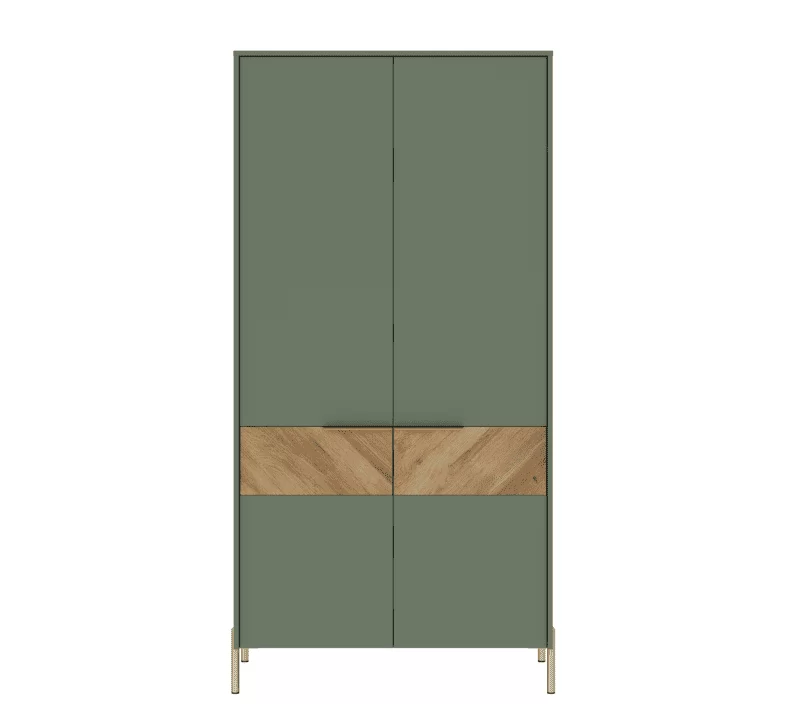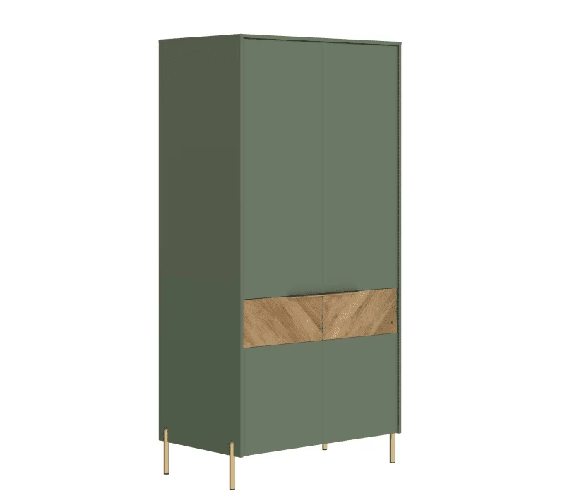Шкаф Siena в оттенках дымчатого зелёного и дуба вотан — это элегантное сочетание современного дизайна и функциональности. Двустворчатая модель гармонично вписывается в интерьер спальни, гостиной, прихожей или кабинета, обеспечивая удобное хранение вещей.