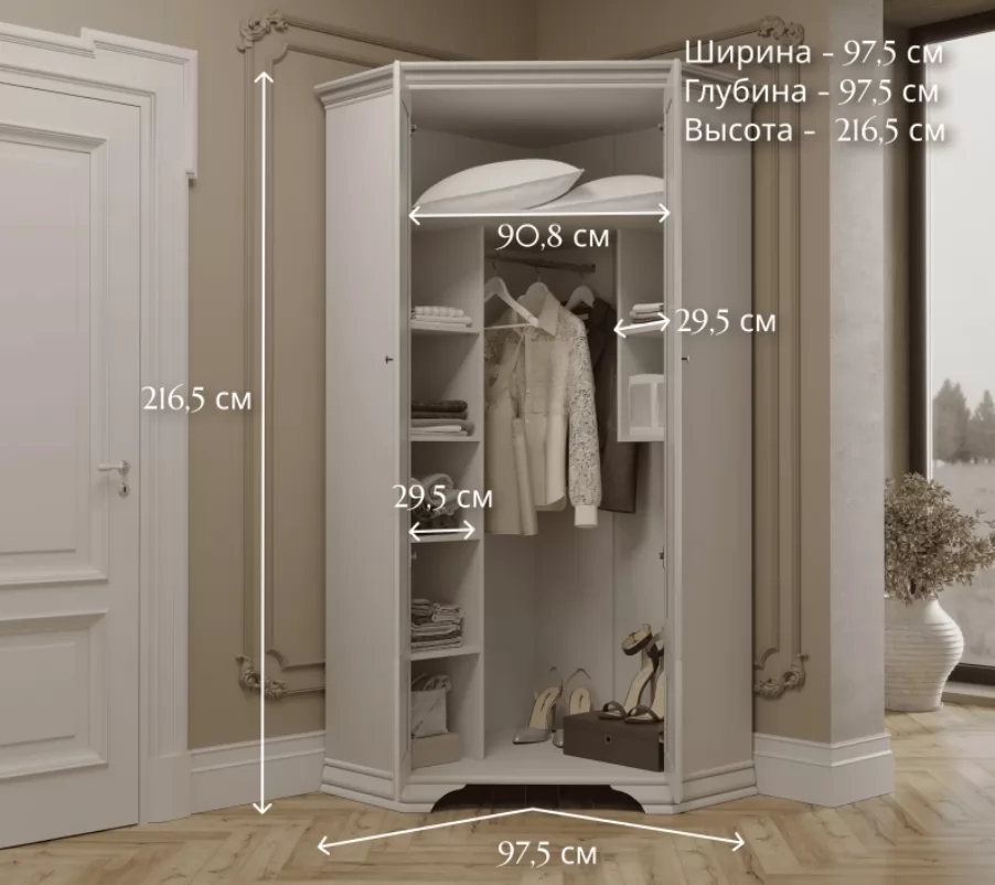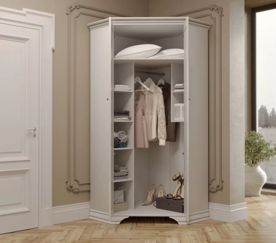 Главное преимущество углового шкафа — эффективное использование пространства в комнате.