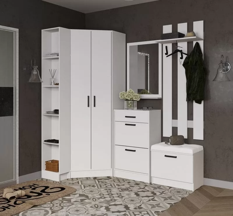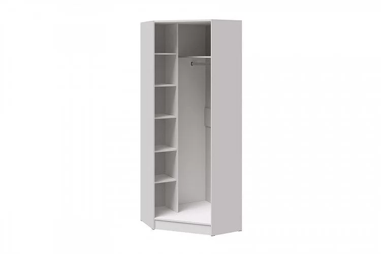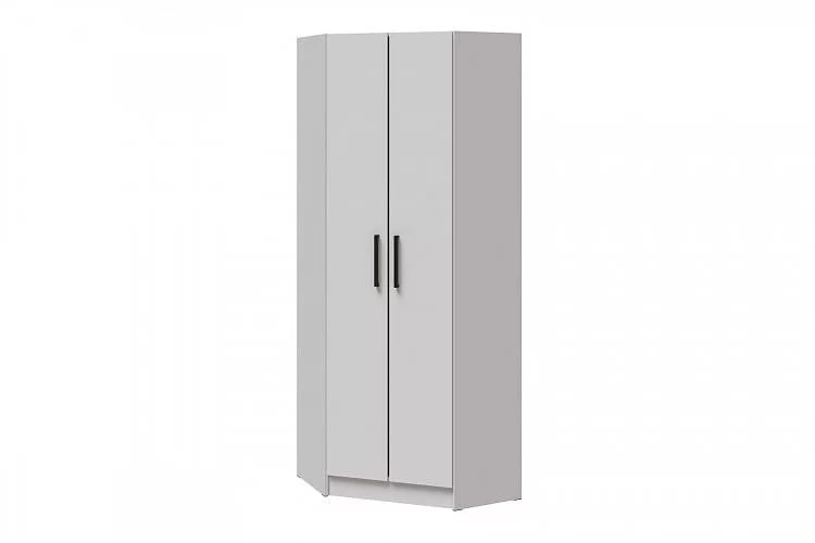 Высота, мм: 2150 Ширина, мм: 800 Глубина, мм: 800 Материал корпуса: ЛДСП Материал фасада: ЛДСП Цвет корпуса: Белый Цвет фасада: Белый Вид установки: Напольный Форма: Угловой Штанга: Поперечная Цвет ручки: Черный Материал ручки: Пластик Количество дверей: 2