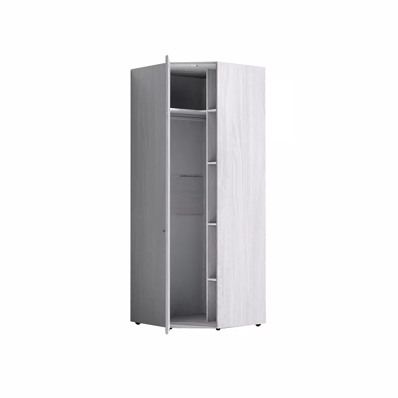 Отлично организовать пространство в маленькой спальне поможет угловой шкаф. Стационарная штанга длиной 819 мм и полноценный стеллаж для белья внутри способствуют аккуратной организации вещей. Угловой шкаф PAOLA 156 оснащен беспроводным светодиодным светильником, который включается при открывании двери. Это особенно удобно, если нужно найти в шкафу вещи, не потревожив близких. Легкая установка на магнитное крепление - не требует сверления, прокладывания провода, подключения к сети. Шкаф обязательно крепится к стене на подвесы, а компенсировать неровности пола можно, благодаря регулируемым опорам.