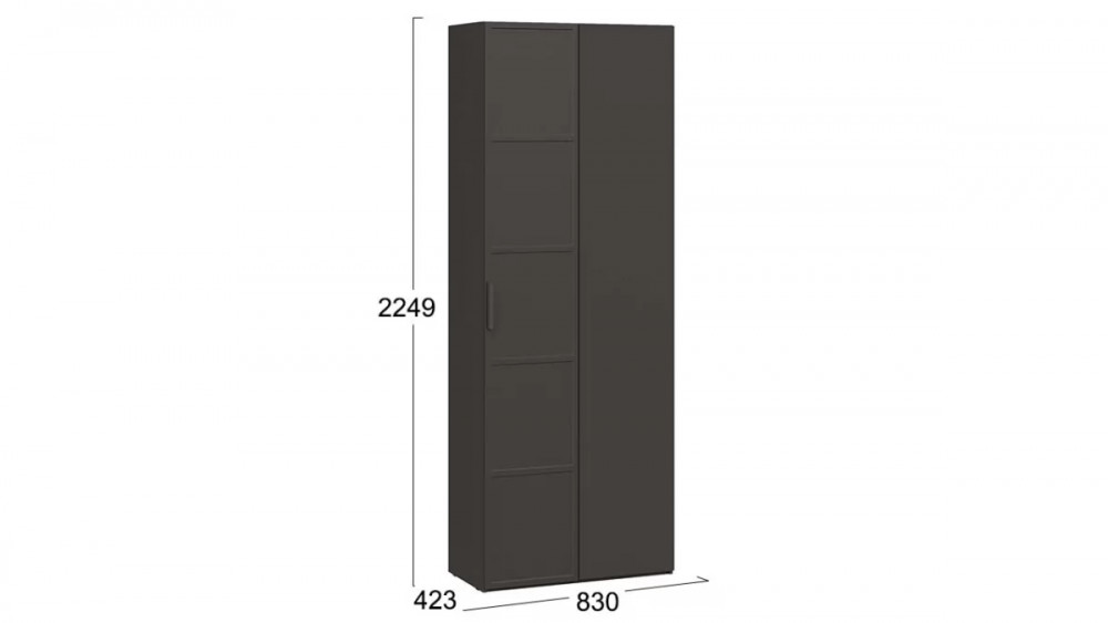 Назначение: Мебель для хранения Комната использования: Спальня Материал кромки каркаса: ПВХ Тип: Шкаф Материал каркаса: ЛДСП Материал ручек: Пластик Производство: Россия Габаритная ширина: 830 Габаритная высота: 2 249 Форма предмета: Прямоугольный Габаритная глубина: 423 Модель: Стелла (детская) Материал фасада: МДФ в пленке ПВХ Цвет: Серый вулкан, Фон серый Цвет каркаса: Фон серый Цвет фасада: Серый вулкан Тип сборки: Универсальный левый/правый Наличие механизма раскладки: Нет Наличие спального места: Нет