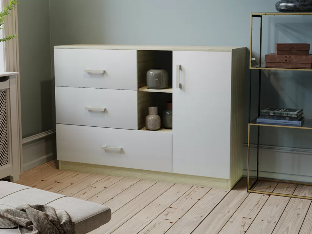 Комод К-3.1 (Росток-Мебель) Дуб сонома/Белый жемчуг в Советском