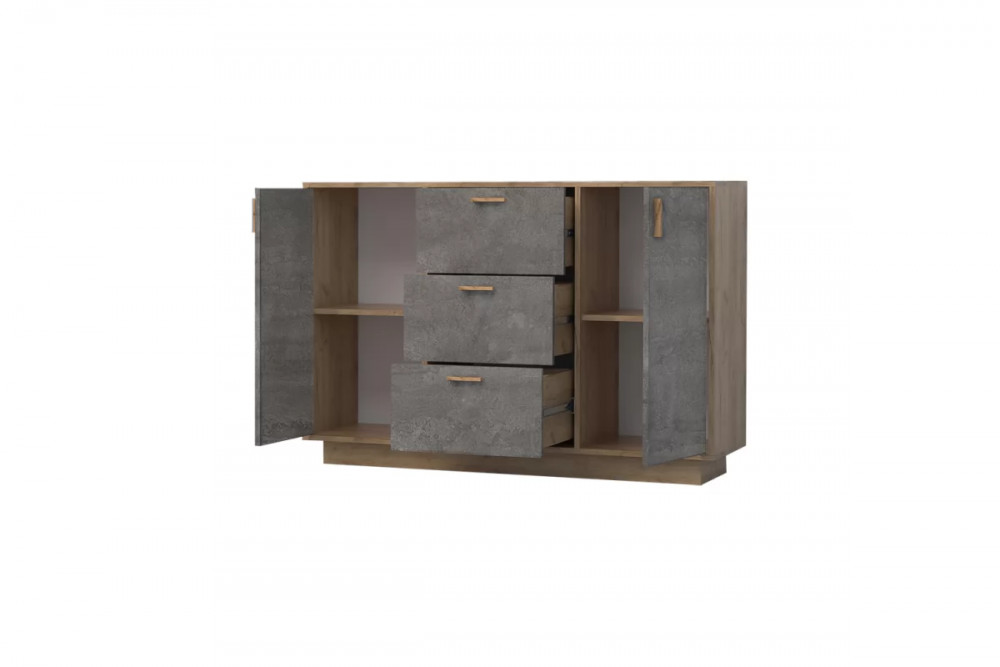 Комод Эго К-3, 3 ящика, дуб крафт золотой/камень темный, цоколь Диал