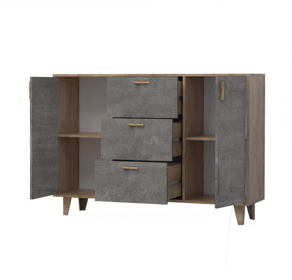 Комод Эго К-2, дуб крафт золотой/камень темный, цоколь Диал