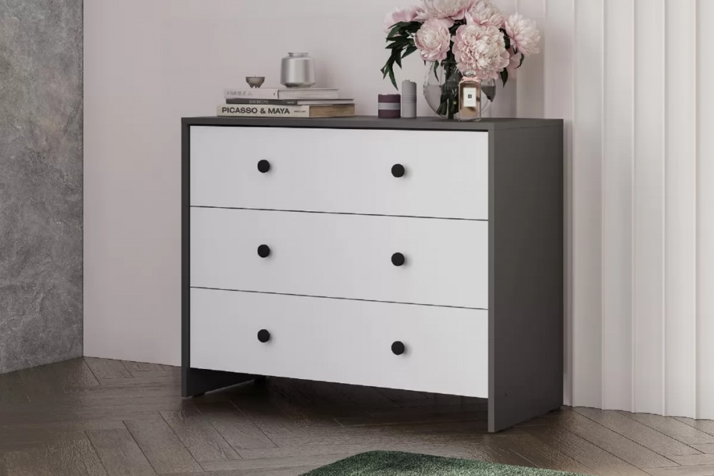 Модульная система "Дольче" Комод 3 ящика Графит / белый в Советском