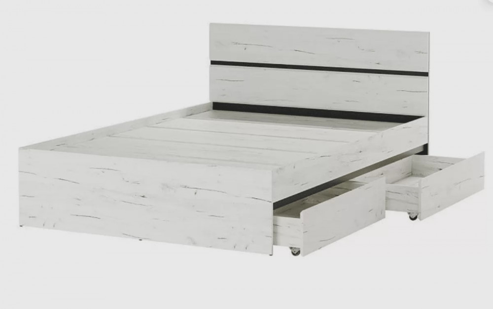 ГРЕТТА Кровать 1400 (2добора, 2ящ) (с/м 1400*2000мм) (б/матр.), ЛДСП дуб крафт белый-антрацит НАСТИЛ