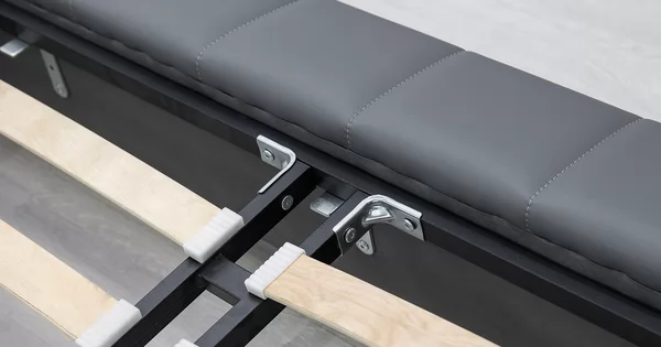 Габариты(Д x Г х В, мм): 2500 x 2000 x 880Спальное место (Д x Ш, мм): 2000 x 1600Высота от верха царги до пола (мм): 335-415Углубление под матрас (мм): 35-115Рекомендованная высота матраса (мм): от 120Допустимый вес матраса для кровати: без ограниченийМаксимально допустимая нагрузка на 1 спальное место: 100 кгДля этой модели не предусмотрен механизм подъема основания и наличие кроватного днаПримечаниеЗадняя стенка изголовья выполнена в тех. ткани (спанбонд).Бельевой ящик: нетСъемный чехол: нетМатериалыКаркас: ДСП, ДВПХарактеристики лат: 760 x 53 x 8Материал лат: гнутоклееная фанераМатериал опор: металлДекор: Каркас кровати декорирован стежкой