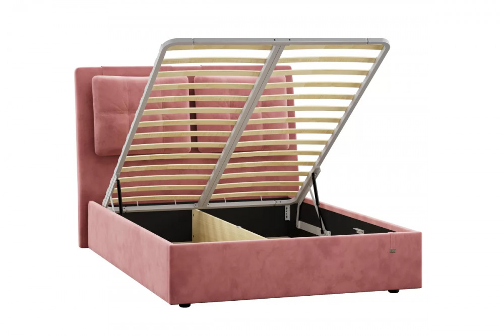 Подъемный механизм легок в управлении, а вместительный короб внутри кровати подойдет для хранения подушек, белья и других вещей.