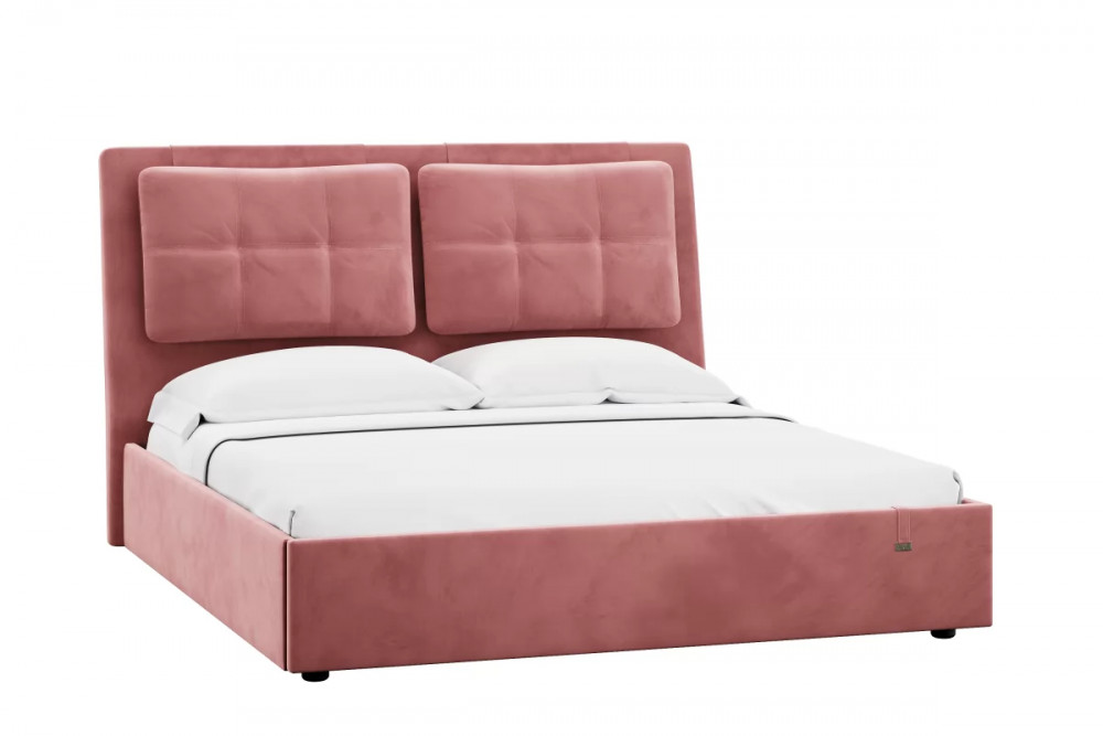 Кровати выполнены в нейтральных и в ярких тканях велюр, что позволяет подобрать подходящий вариант почти под любой интерьер. В качестве декора применяются декоративные подушки на изголовье.