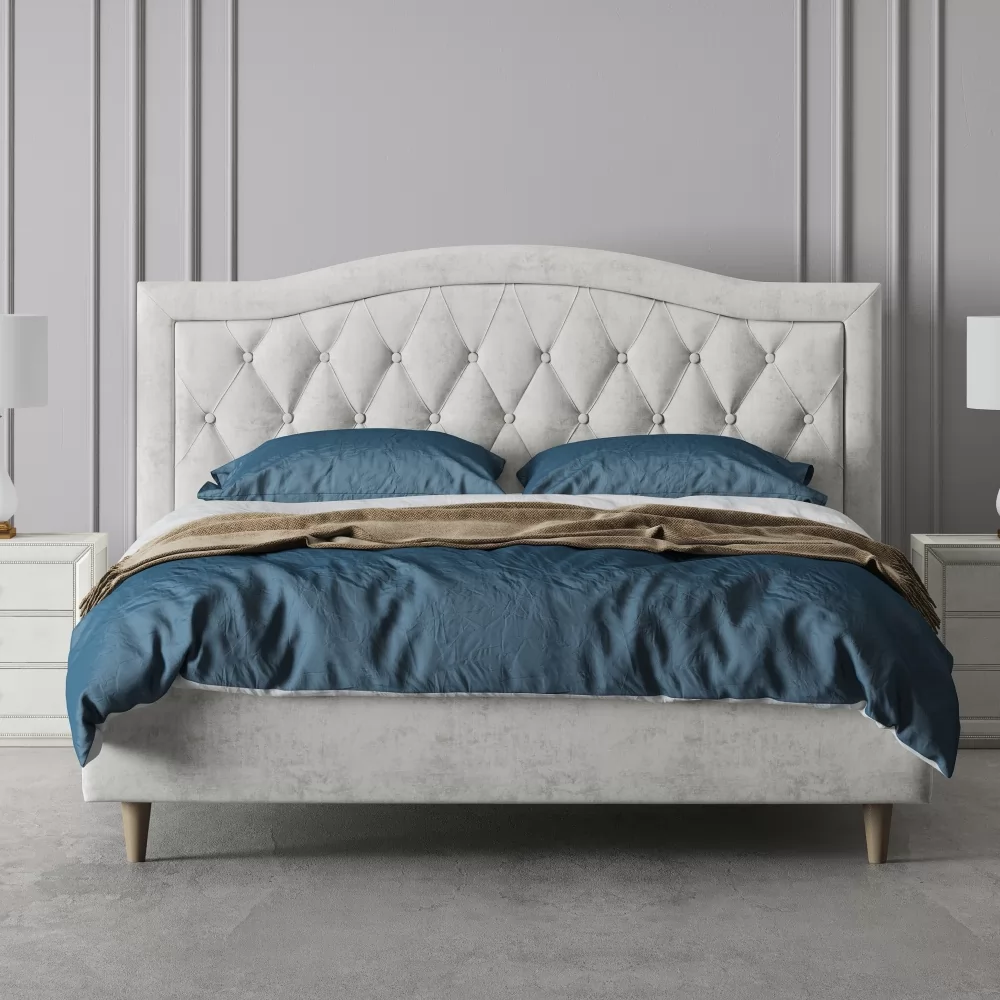Интерьерная кровать с каретной стяжкой на ножках - это элегантный элемент интерьера, который сочетает в себе стиль и комфорт.
