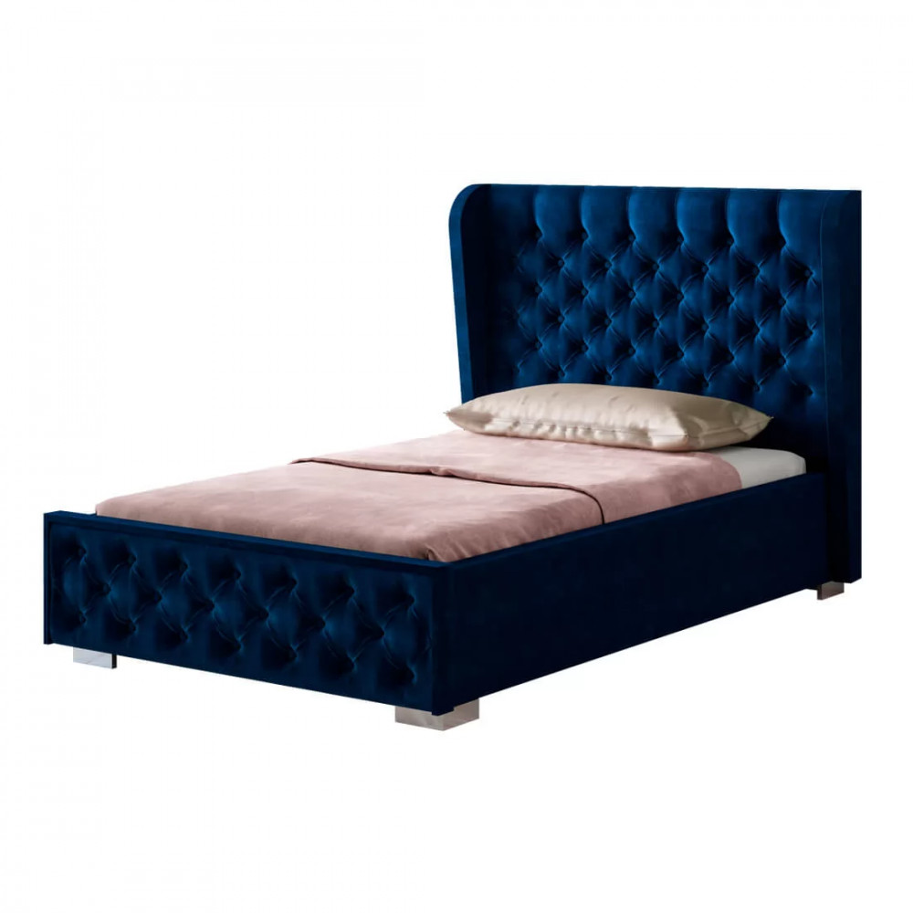 -корпус изделия выполнен из ЛДСП высокого качества, -в дизайне модели используется велюр приятного цвета графит, -высокое мягкое изголовье имеет декоративную стяжку с пуговицами, такой прием придает кровати элегантности.