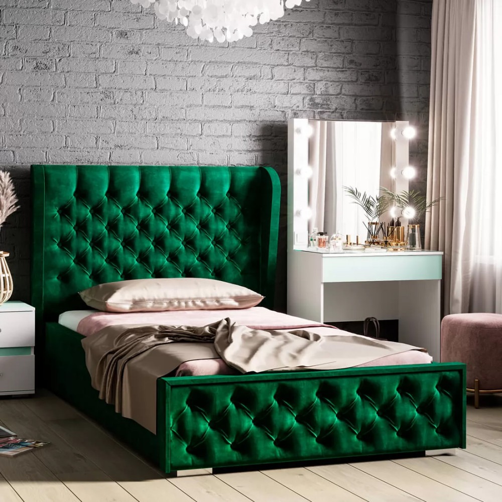 Ширина (мм): 1675 Высота (мм): 1285 Глубина (мм): 2135 Размер спального места: 1400х2000 мм Материал: ЛДСП/Велюр Цвет: Изумруд Вес, кг: 93 Объем, м3: 0.819 Коллекция: Франческа