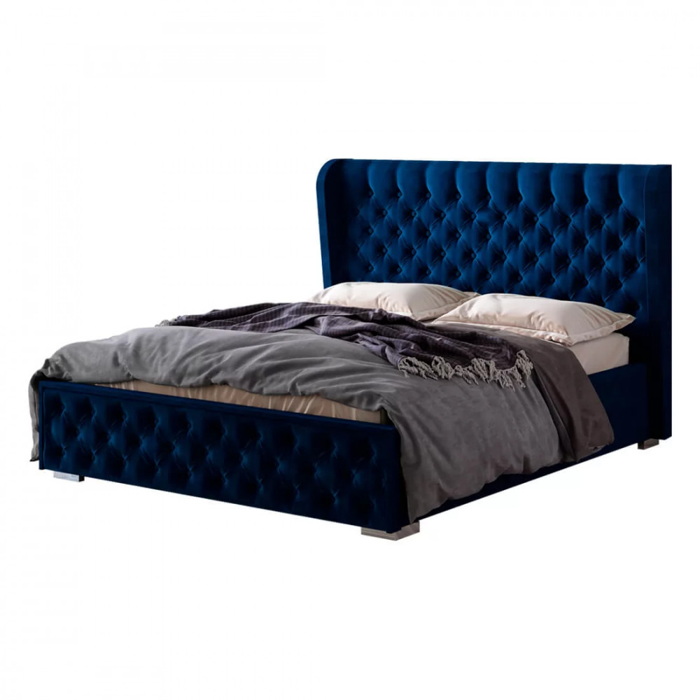 -высокое мягкое изголовье имеет декоративную стяжку с пуговицами, такой прием придает кровати элегантности.
