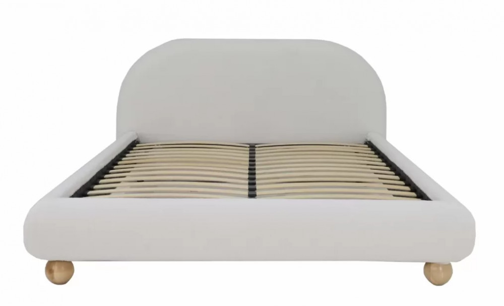 Изюминка кровати - шаровидные опоры из массива и форма изголовья, которые обеспечивают надежную поддержку и индивидуальность.