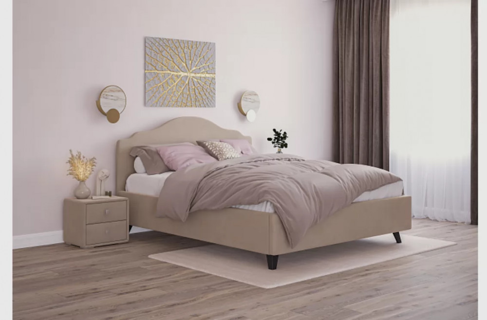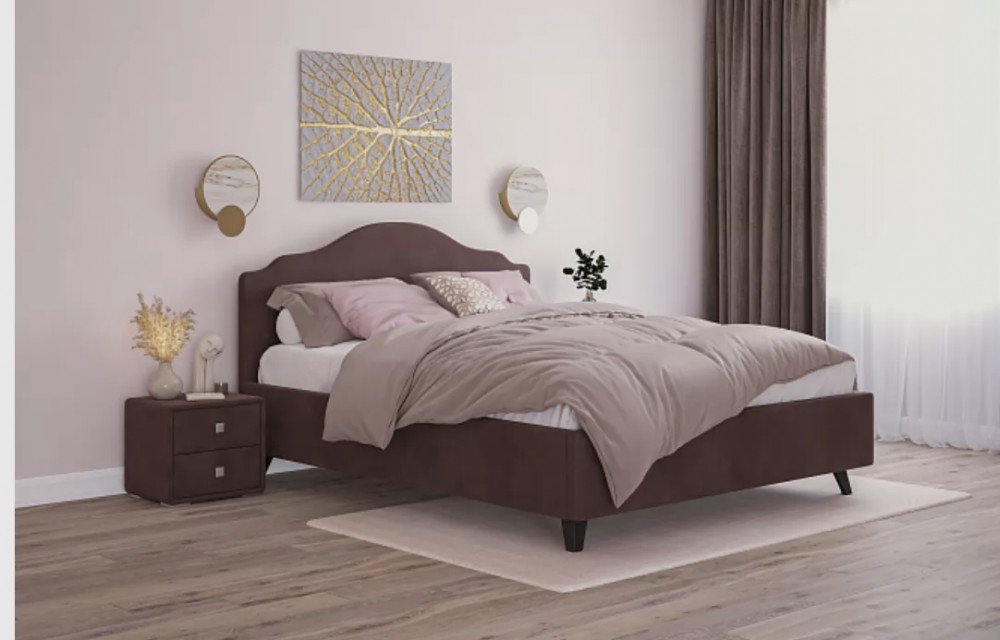 Элегантная кровать Адель имеет фигурное изголовье, комплектуется ортопедическим основанием "Профи" с подъёмным механизмом и коробом для белья.