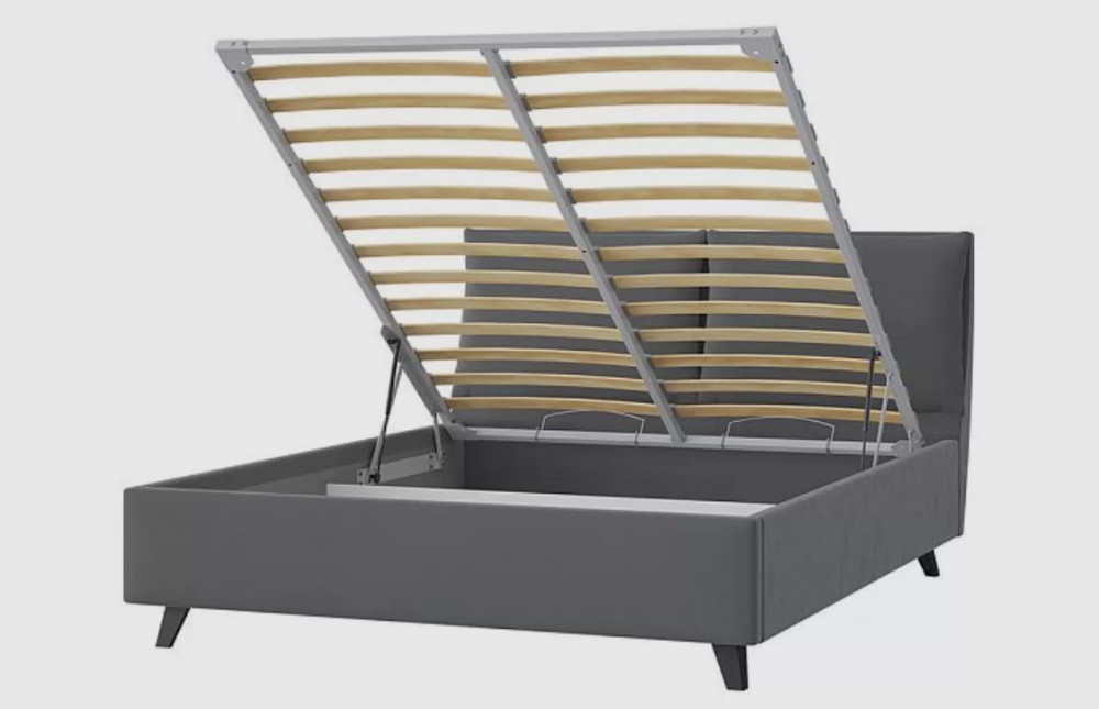 Кровать комплектуется ортопедическим основанием "Профи" с подъёмным механизмом и бельевым ящиком.