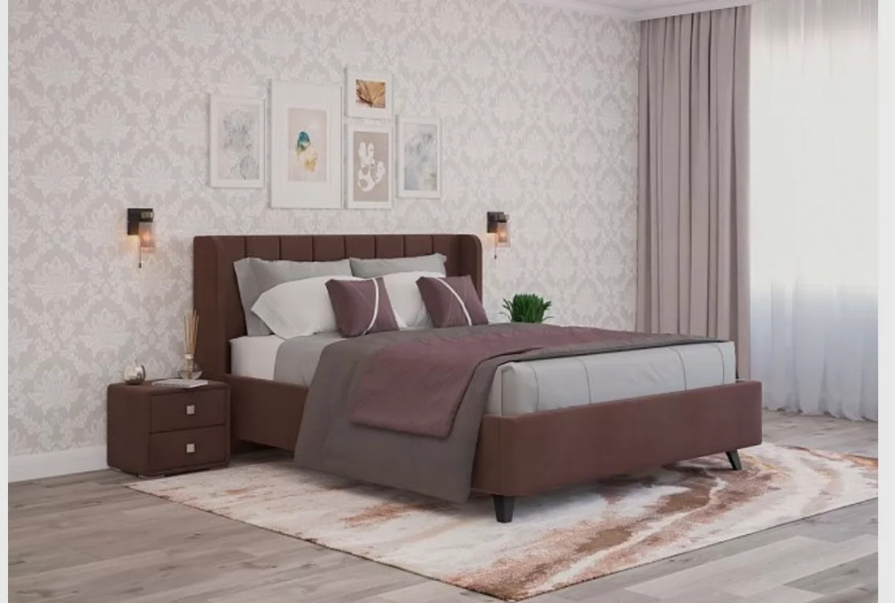 Кровать комплектуется ортопедическим основанием "Профи" с подъёмным механизмом и бельевым ящиком.