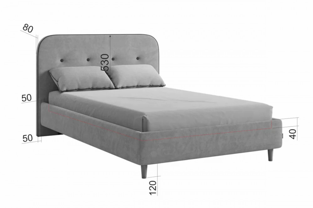Кровать с основанием Лео 120х200 см галька/графит (велюр)