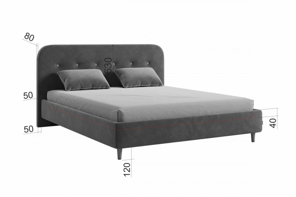 Кровать с основанием Лео 160х200 см галька/графит (велюр)