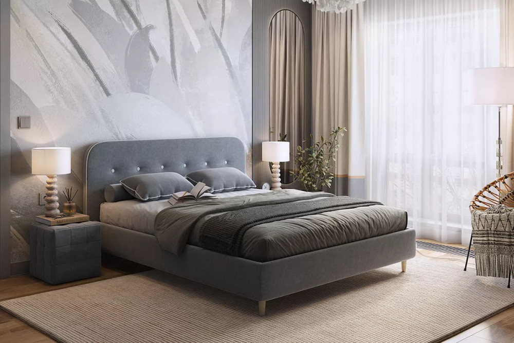 Кровать с основанием Лео 120х200 см галька/графит (велюр)