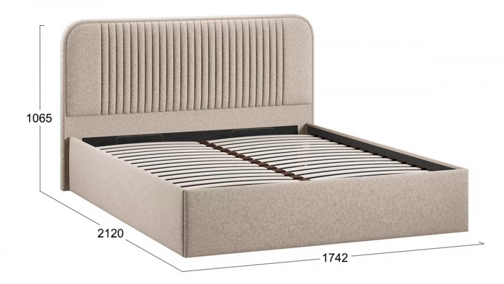 Спальное место - длина: 2 000 Назначение: Мебель для сидения и лежания Наличие подъемного механизма: Да Отсек для хранения: Да Гарантийный срок: 18 месяцев Комната использования: Спальня Тип спинки: Мягкая Стиль: Современный Габаритная длина: 2 120 Тип: Кровать Расположение: Напольный Материал каркаса: ДСП Спальное место - ширина: 1 600 Производство: Россия Отделение для белья: Да Основание кровати: Ламели Габаритная ширина: 1 742 Габаритная высота: 1 065 Форма предмета: Прямоугольный Тип кровати: Двуспальная Модель: Тиффани Срок службы: 10 лет Оттенок: Бежевый Цвет: Микровелюр Jercy Cream Обивочный материал: Микровелюр Jercy Обивочный материал (изголовье): Микровелюр Jercy Наличие механизма раскладки: Нет Наличие спального места: Нет Заглушина ящика кровати в комплекте: Да Коллекция обивочного материала: Jercy cream